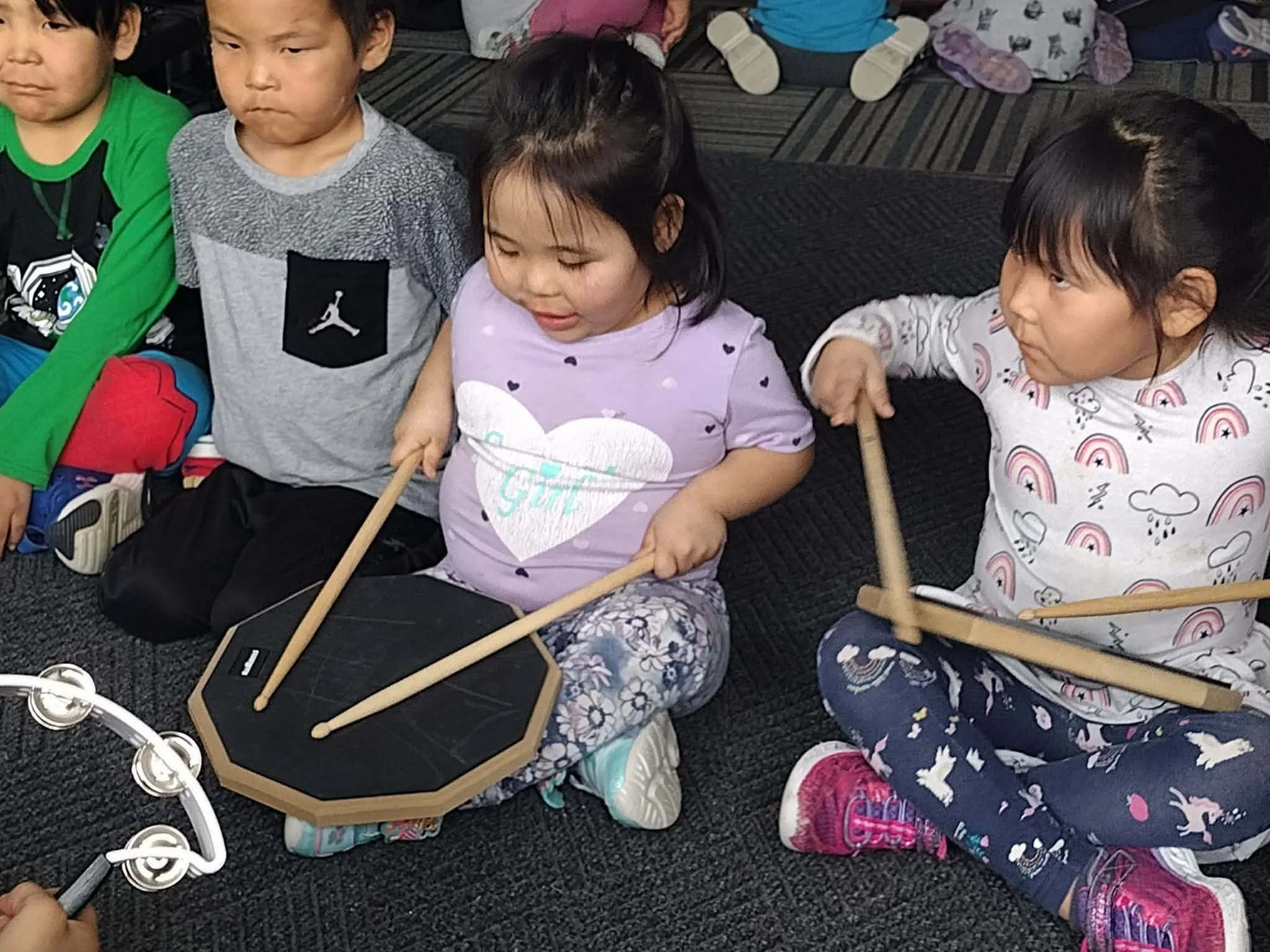 While working in remote Alaska communities, I taught music and songwriting to students ranging from toddlers to high school seniors. These courses were part of accredited educational programs and included rhythm, songwriting, performance, and collaborative music-making. The program also extended beyond the classroom through community performances and events that brought families and neighbors together through music. Knowing there is a performance ahead often creates excitement and focus for students, encouraging rehearsal, teamwork, and a shared sense of purpose.